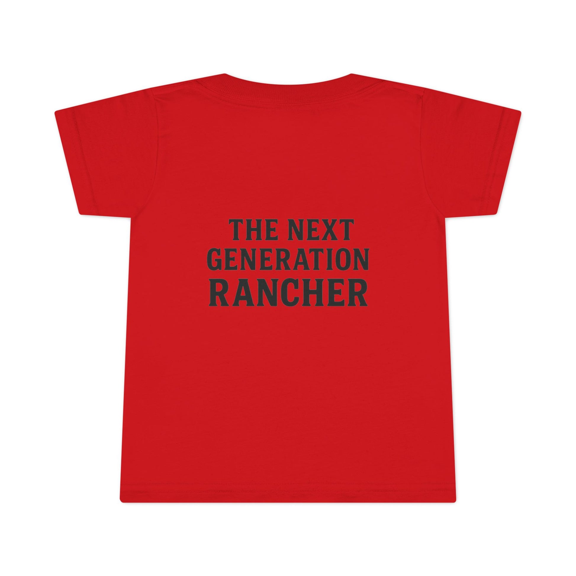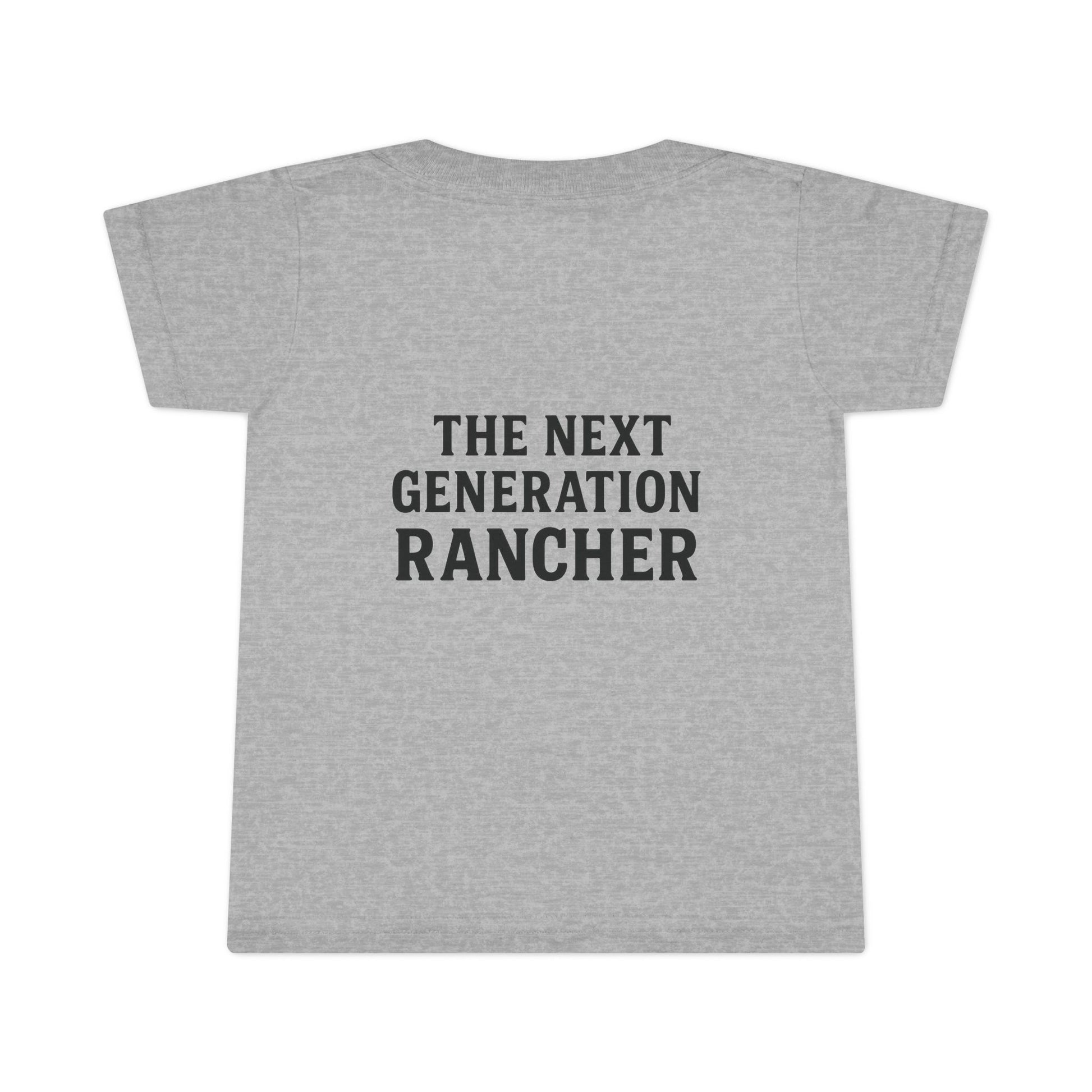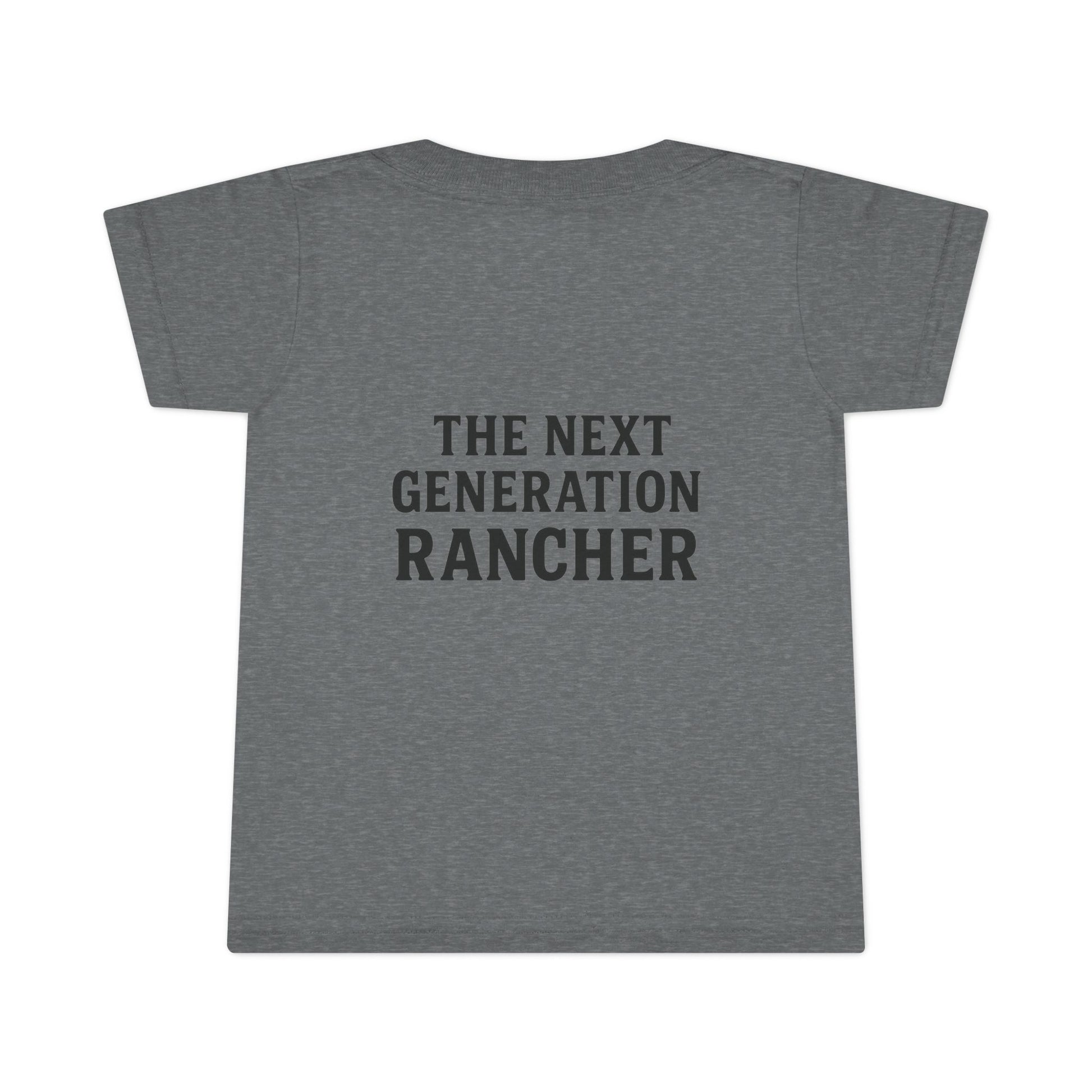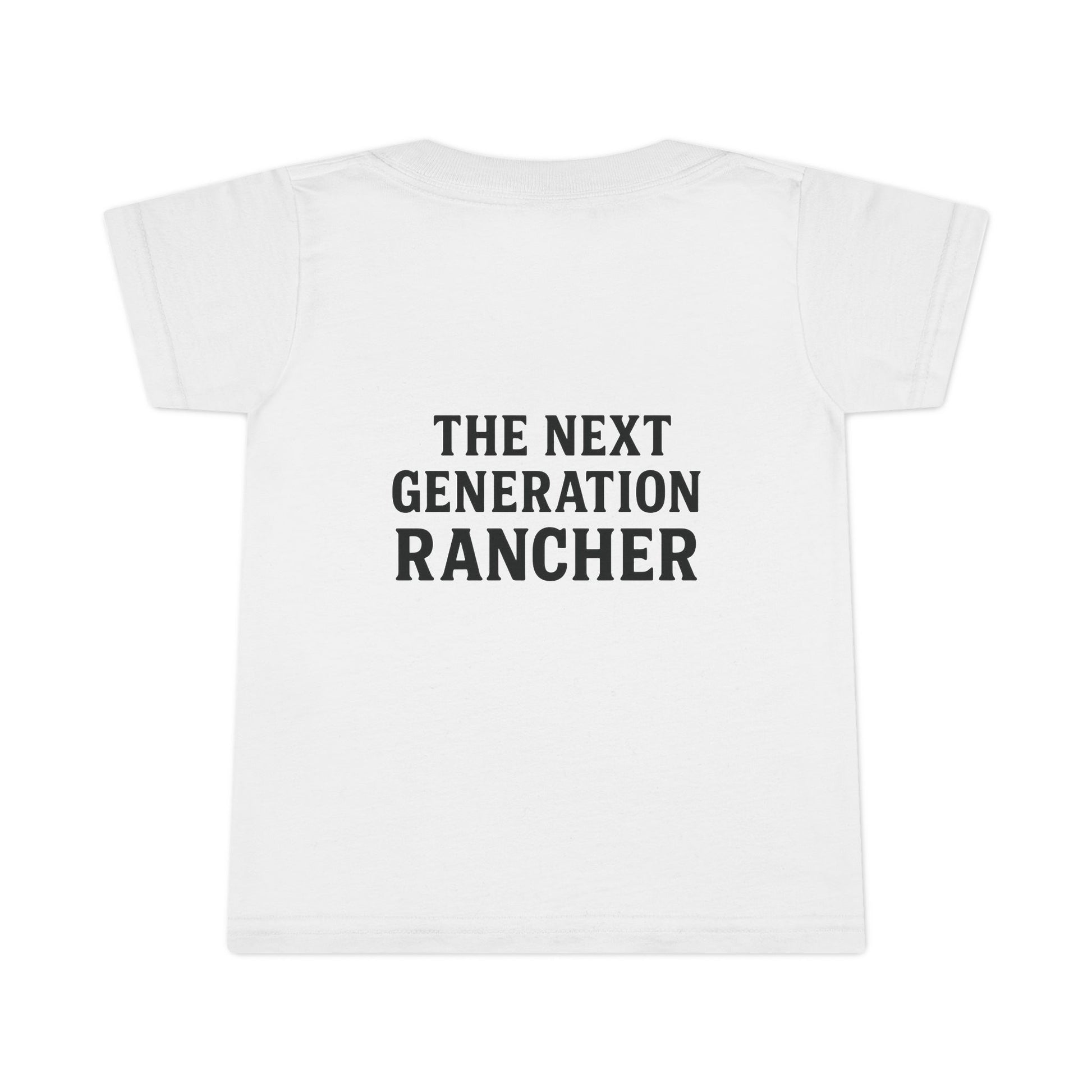 Small hands, big future. This toddler t-shirt carries the quiet grit of life on the ranch—clean lines, breathable cotton, and a back slogan that says it plain: The next generation rancher. It sits light and comfortable on busy days of outside play, morning chores, or family photos by the barn.